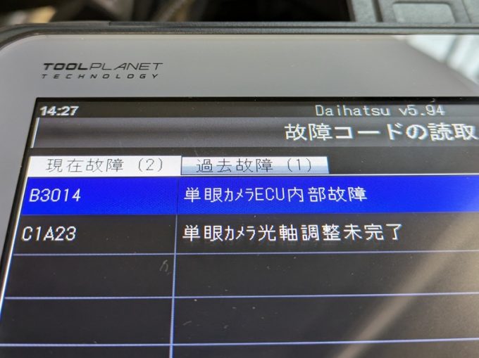 ・グリル内にレーザーレーダを搭載している、「スマアシ1」 「スマアシ2」 は、軸ズレや本体故障で警告灯が点灯するケースが少なくないので、レーダーエーミング(光軸調整)のつもりでいましたが、カメラ故障が原因でした。 オークション車なので、このカメラ自体中古で取付けられているのかもしれません。