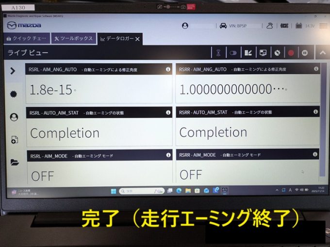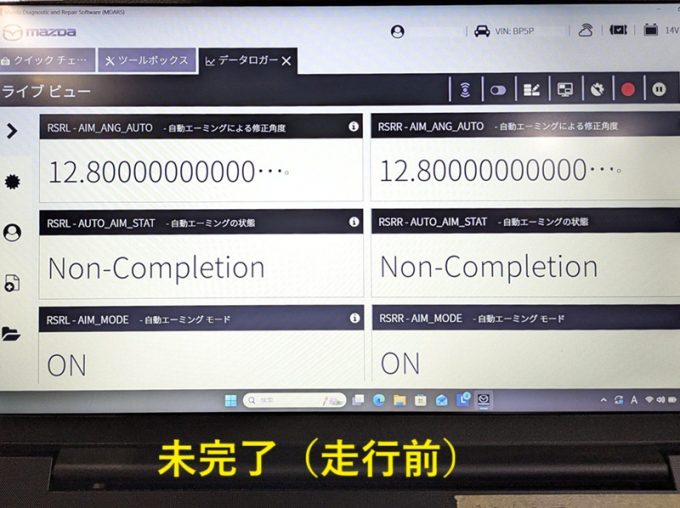 ※小雨降る中、「走行エーミングが完了しない」 とS君は戻ってきましたが、ドライバーを交代して車両の状態を整えて出発 ⇒ 無事完了! 私 「プロ」 なので!!