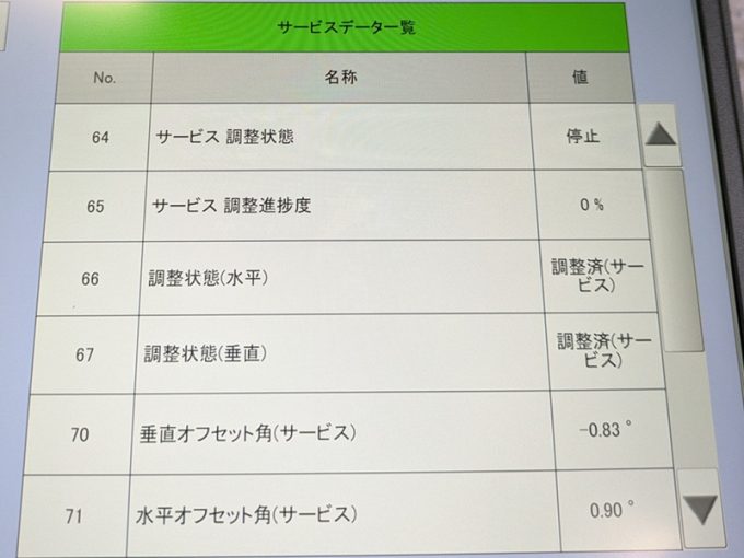 *フロントまわり修理に伴う 「ミリ波レーダー」 エーミング 及び、「ソナー」 点検・測定実施。