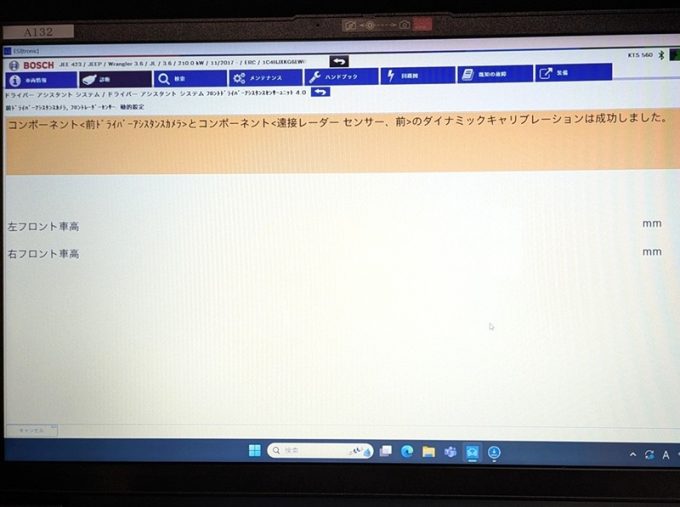 *フロントまわり修理に伴う、「ミリ波レーダー」 エーミング及び 「ソナー(用品)」初期設定 実施。