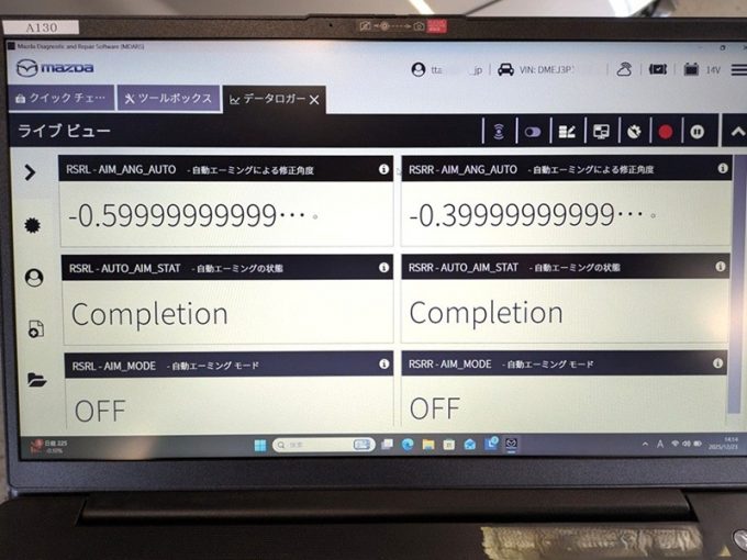 ※ サイドレーダーエーミングは、汎用スキャンツールでは対応していないと思われます。(試していませんが・・)