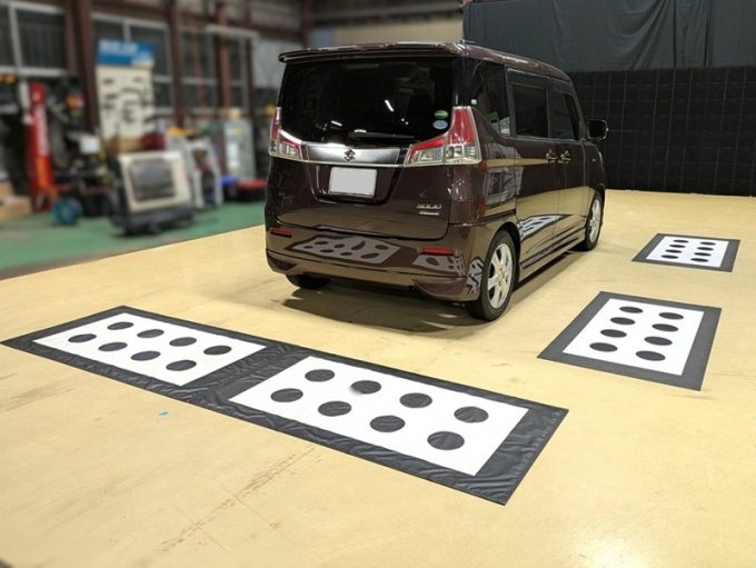 ※ 初期のシステムですね。 ダイハツ 「スマアシ1」 のように「調整」は無く、前方に設置した車両との距離と、レーザーレーダーの検査距離を点検します。