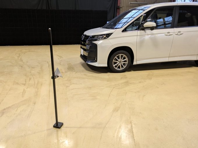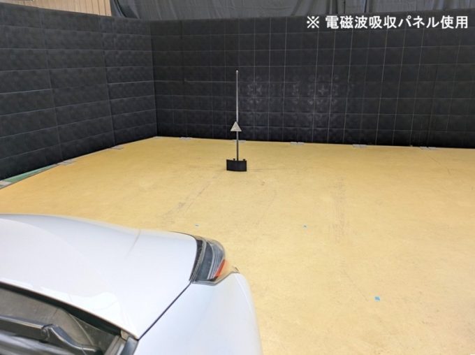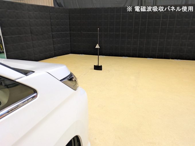 ◆ 左サイドレーダーエーミングでは、左側に必要なスペースを確保しつつ、電磁波吸収パネルを使用して金属性の柱やその他物の不要な反射を低減させています。