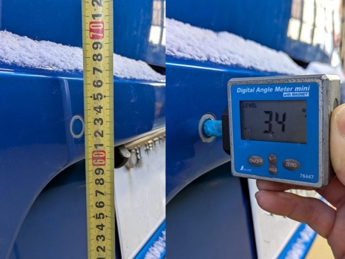 ※ 作業していないカメラの画像は新車時のカメラ高さで調整したものですので、数年の使用でも「へたり」や「摩耗」等により姿勢変化が起き、画像のズレが発生します。