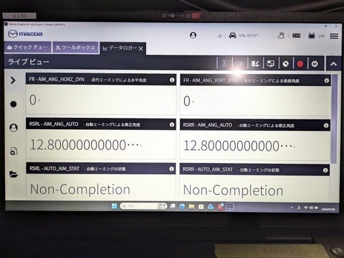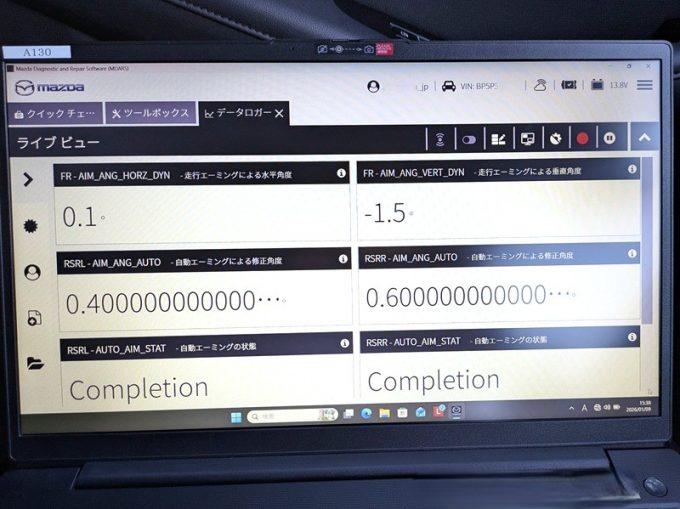 ※ 両システム共に、走行エーミングでのみ作業が可能。 同時作業を選択して、1度の走行で完了。 圧雪アイスバーン路面の為、スピードが出せずに時間がかかりました。