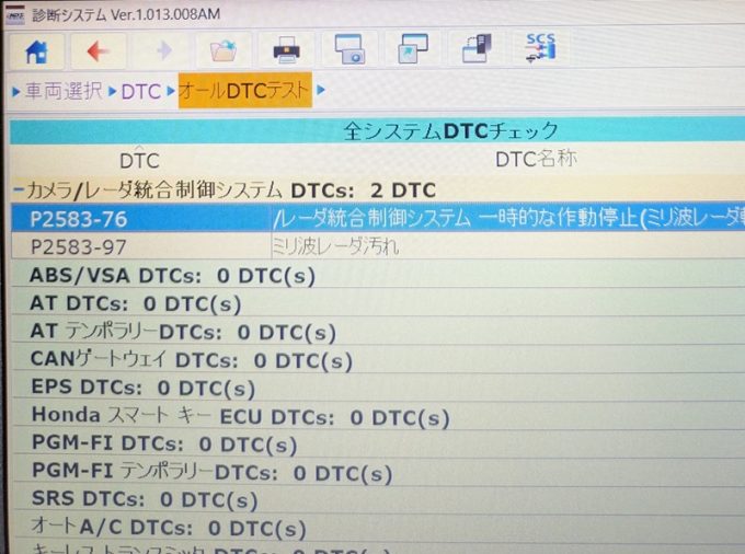 ◆「ガラス脱着後に警告灯点灯」したと カメラエーミングのご依頼でしたが、入庫診断で 「ミリ波レーダー」 の軸ズレ診断を確認しましたので、「ミリ波レーダーエーミング」 も併せて実施。