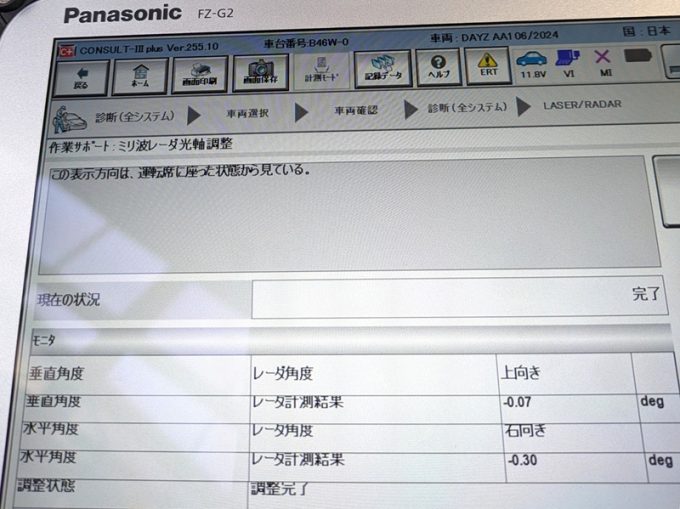 ★ フロントまわり等修理に伴う、「ミリ波レーダー」 エーミング 及び、 フロント 「ICS」(ソナー)登録設定 実施 。
