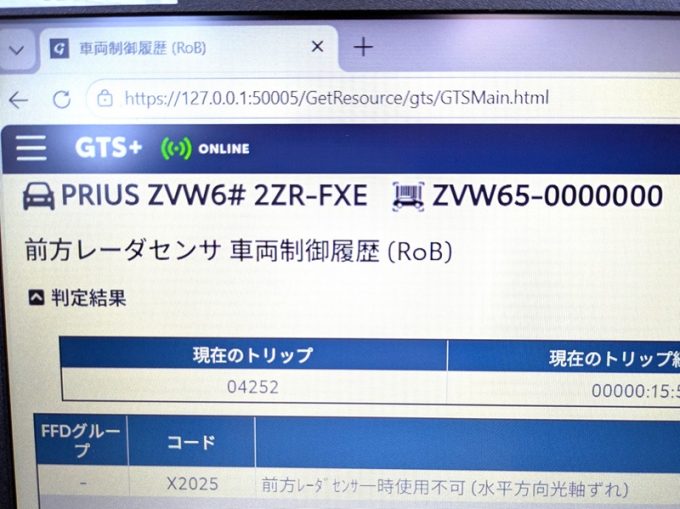 ★ フロントまわり等修理に伴う、「ミリ波レーダー」 エーミング 及び、「ICS」(ソナー)登録設定 実施 。